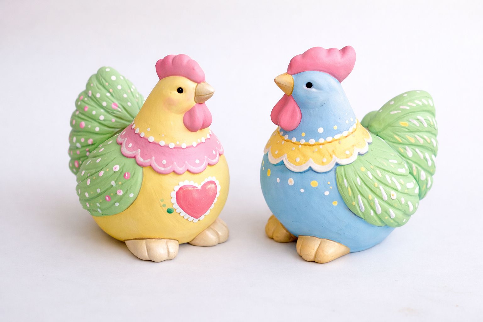 Tijdens deze workshop ga je een haan en kip schilderen. De oorspronkelijke witte kippen worden met allerlei leuke kleurtjes en patronen omgetoverd tot echte hippe kippies. Ze hebben ongeveer een hoogte van 14 cm. Dit is een ontzettend leuke workshop om gezellig samen te volgen met je vriendinnen, collega’s of familieleden.